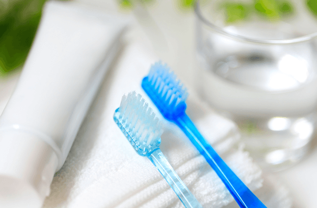 歯ブラシは歯科専売の歯ブラシ(300円程度)を無料で新しく出して使います。帰りにお持ち帰りいただけます。フロスなども使いまわさず、新しいものを毎回出しますので感染などの心配はありません。
